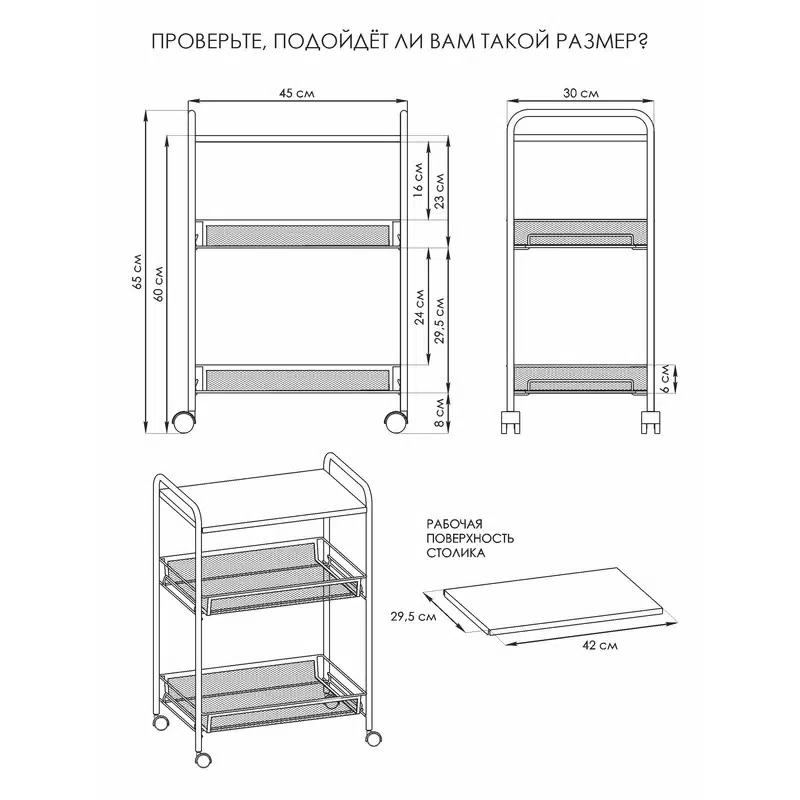 Этажерка имеет открытую конструкцию, за счет чего легко чистится, благодаря чему не требует сложного ухода.