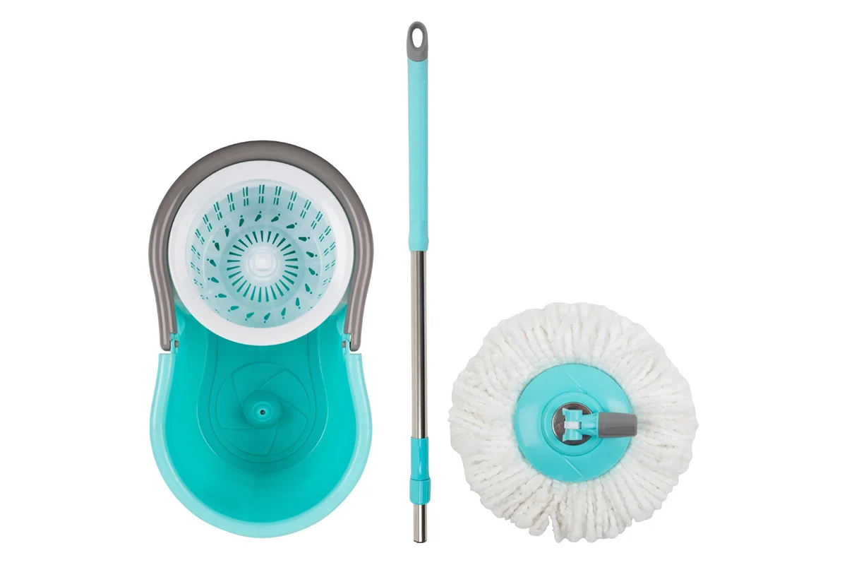 Ведро для отжима швабры имеет объем 8 литров, что позволяет вместить достаточное количество воды для уборки. Центрифуга для отжима выполнена из пластика, что делает ее легкой и удобной в использовании.