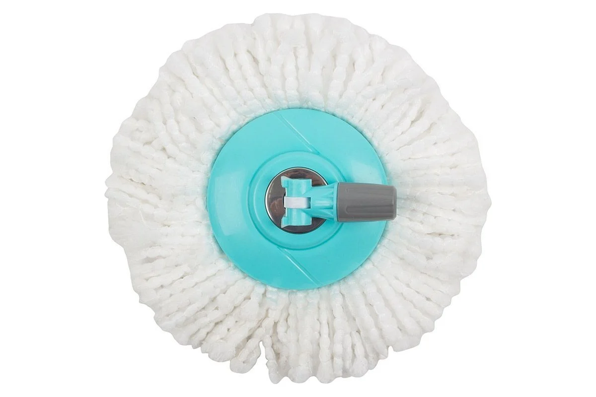 Насадка для швабры выполнена из микрофибры, что позволяет эффективно удалять загрязнения с различных поверхностей. Диаметр насадки составляет 35 см, что обеспечивает большую площадь уборки.
