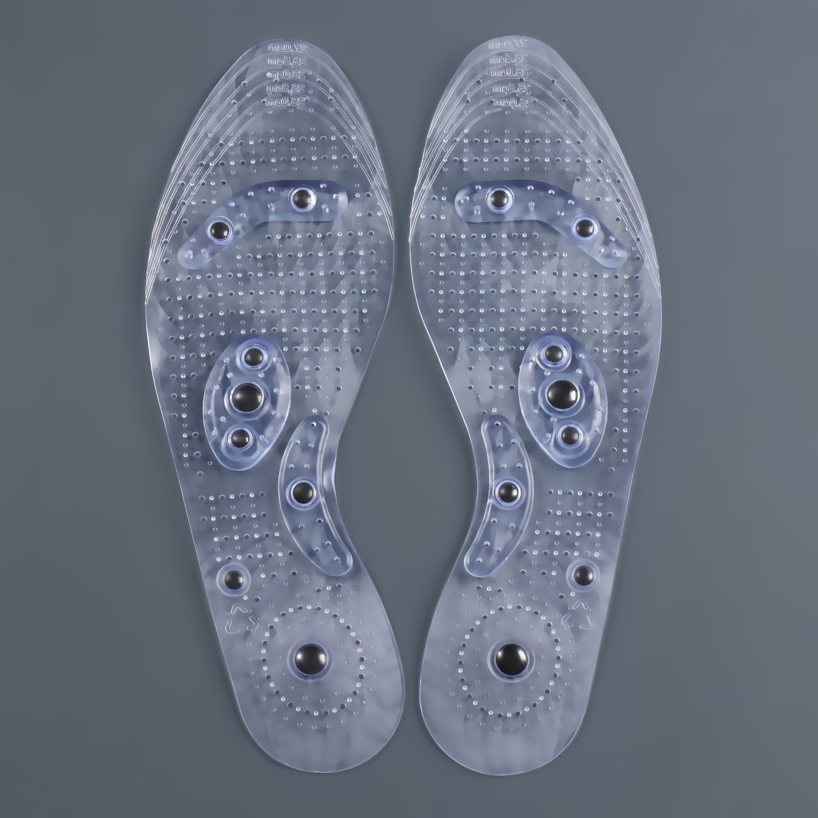Массажные стельки уменьшат нагрузку на стопы и сделают любую обувь комфортнее. Изделия предотвращают образование мозолей и натоптышей, а гелевые выпуклости на поверхности стимулируют биоактивные точки, улучшают кровообращение и уменьшают усталость ног.